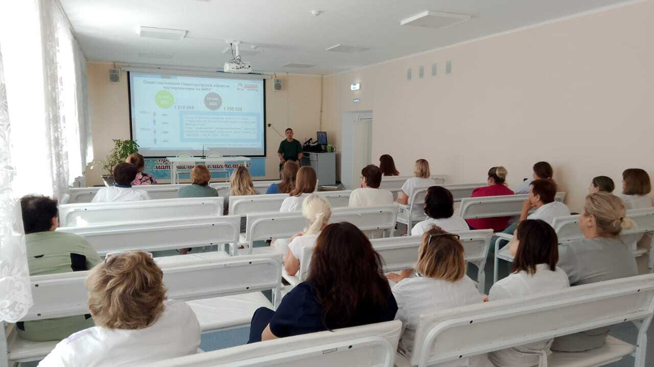 Организационно-методические выезды с целью оценки исполнения показателя охвата тестированием на ВИЧ-инфекцию прикрепленного населения в рамках исполнения Госстратегии продолжаются 15 июля 2025 года врач-методист Нижегородского Центра борьбы со СПИД Евгений Рыжов оценил исполнение целевых показателей по вопросам ВИЧ-инфекции в "Лысковской ЦРБ" и "Воротынской ЦРБ". В ходе общения были даны практические рекомендации касательно улучшения процессов. Особое внимание уделили назначению кодов контингентов обследования на ВИЧ. С медработниками ЦРБ провели обучающие мероприятия по оформлению до- и послетестового консультирования в системе электронного документооборота. Врач-инфекционист Центра Роман Замятин разобрал примеры клинических случаев и эпидпоказания к тестированию на ВИЧ и ответил на вопросы коллег.