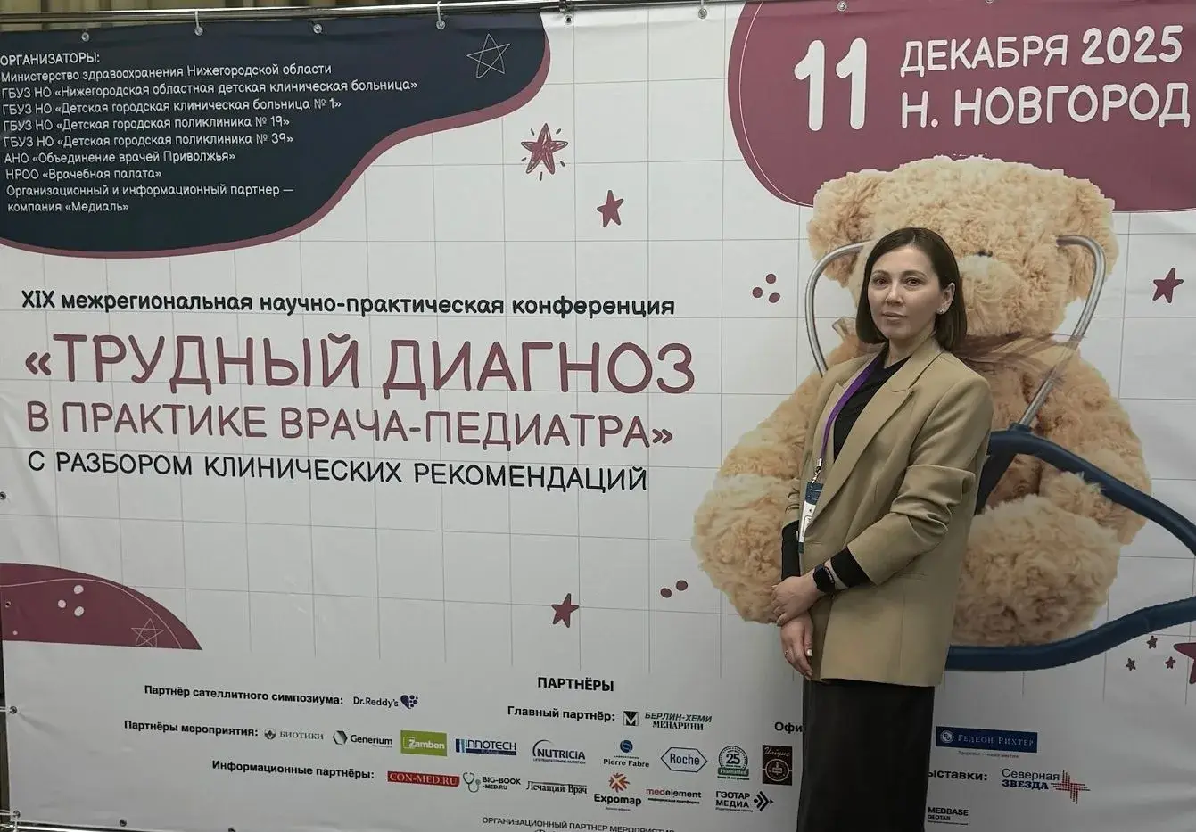 Врач-педиатр Нижегородского Центра борьбы со СПИД Наталья Тибилова выступила на проходившей 11 декабря 2025 года в Нижнем Новгороде XIX межрегиональной научно-практической конференции "Трудный диагноз в практике врача-педиатра".